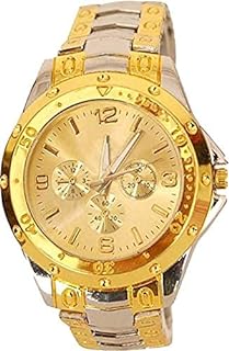 Stylish Gold Silver Metal Strap with Golden Dial B...
